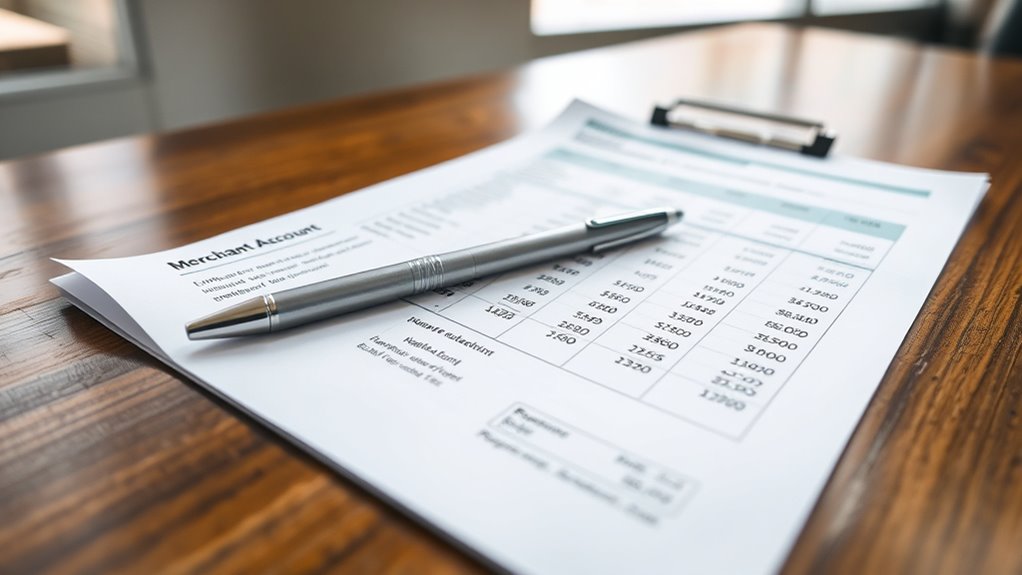 To understand your merchant account statement, start by reviewing the gross sales and subtracting refunds and chargebacks to see your net income. Pay close attention to transaction fees, including processing and additional charges, and compare them to your sales volume. Note peak transaction times and any discrepancies in deposits, which can signal unnecessary costs. By analyzing these details, you’ll gain better control over your expenses and sharper insight into your business’s financial health—more tips await as you continue exploring.