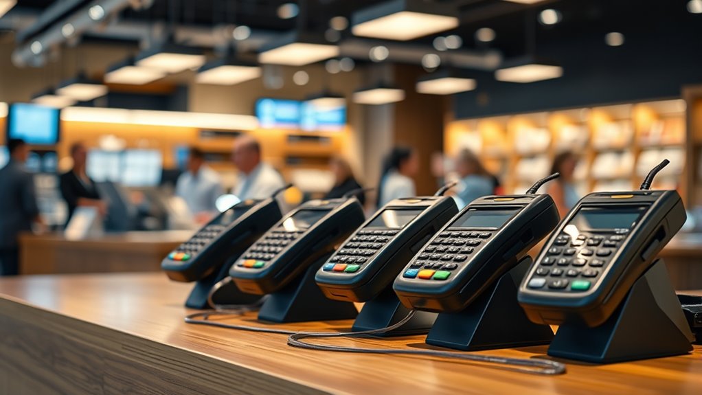 Hidden costs can catch you off guard whether you lease or buy credit card terminals. Leasing might lead to long-term commitments, hefty cancellation fees, and outdated technology, while buying involves high upfront costs, ongoing maintenance, and potential obsolescence. Additional charges like processing fees, PCI compliance costs, and early termination penalties also add up. Always read the fine print to understand these hidden expenses, so you’re not surprised later.