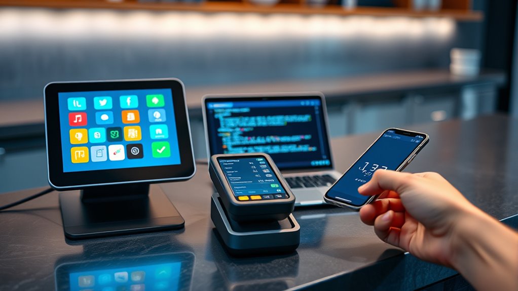 Mobile readers offer maximum flexibility, letting you process payments on the go using smartphones or tablets. They’re perfect for vendors at markets, service providers, or freelancers who travel. Security concerns with mobile readers are significant; you want devices that encrypt data during transmission and are compliant with industry standards. Ease of use is one of their biggest advantages, often involving just a few taps to complete a transaction. Many mobile readers integrate seamlessly with existing apps, making it simple to track sales and manage payments from anywhere. Still, because these devices are portable and often connect via Bluetooth or Wi-Fi, you should be diligent about keeping software updated and safeguarding your devices against theft or hacking. If convenience and mobility are priorities, mobile readers could be the best choice for your business.