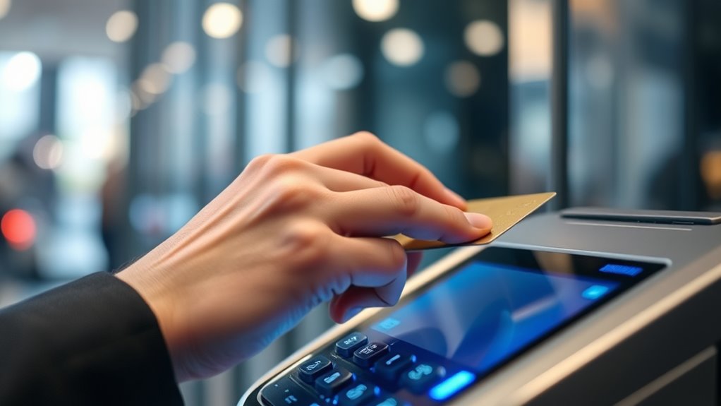 Think of your contactless transaction as a fortress guarded by digital sentinels. Biometric authentication, like fingerprint or facial scans, acts as a personal key, ensuring only you can approve payments. Tokenization technology replaces sensitive card details with unique codes, making hackers’ job nearly impossible. These security measures work together, creating a shield that keeps your money safe while you tap and go, giving you peace of mind in a fast-paced world.